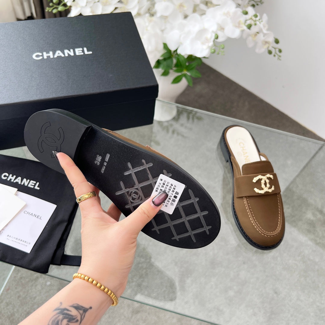CC 25 Mule Dark Brown Calfskin Gold Double C