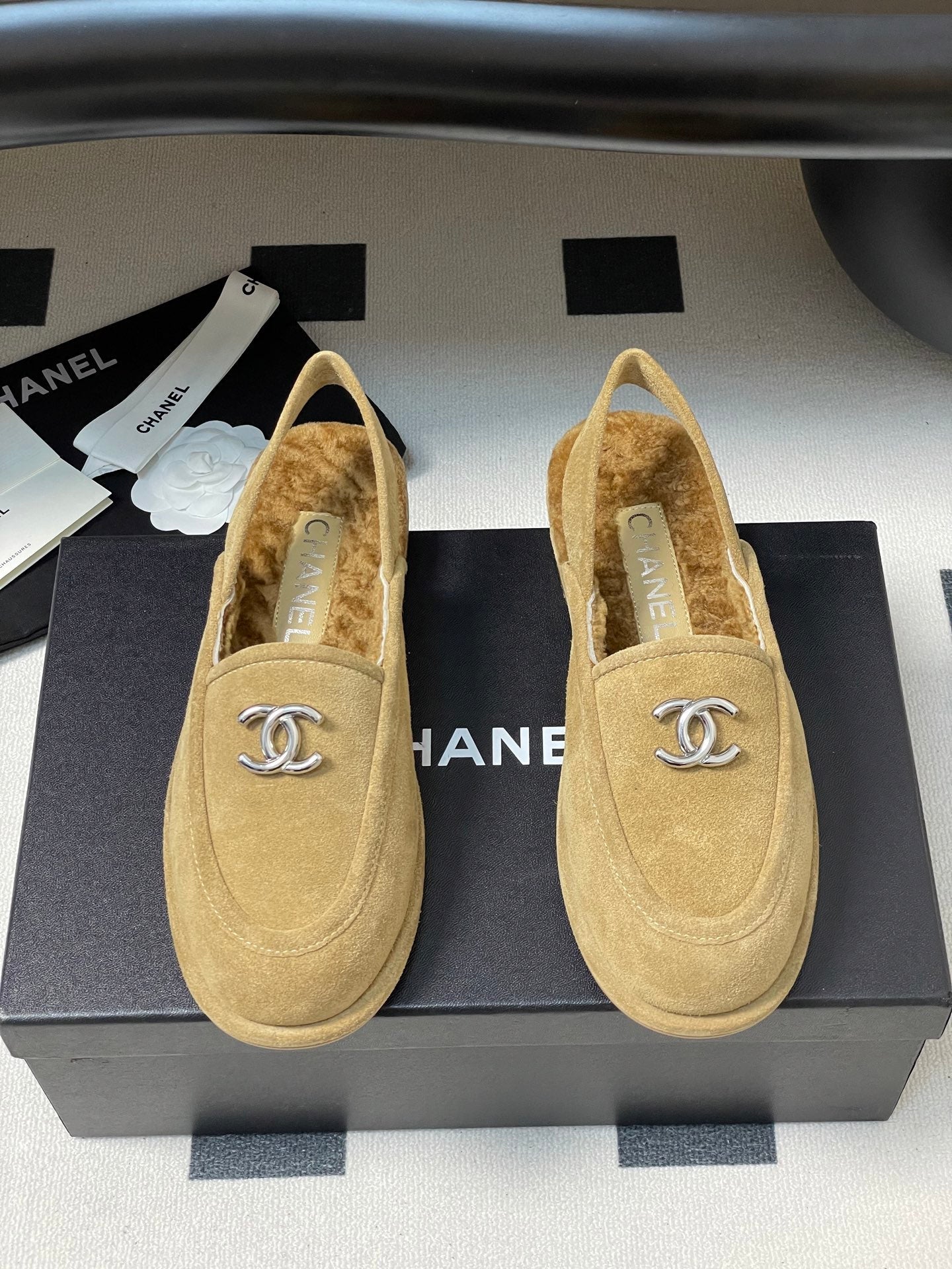 CC 25A Slingback Loafer Beige Sherpa Suede