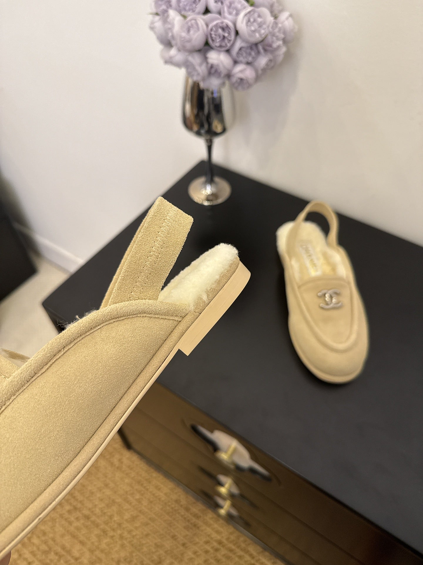 CC 25A Slingback Loafer Light Beige Sherpa Suede