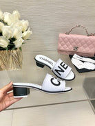 CC 25C Mid Heel Mule White Fabric Material 212959