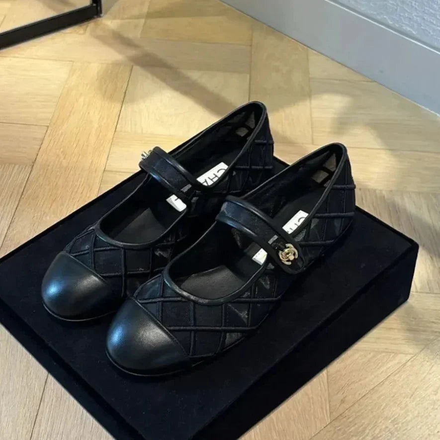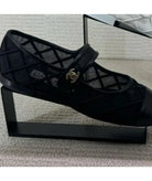 Chanel Mary Janes Flats Black Mesh Leather