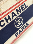 CC 25C ToTe Bag Beige Navy Blue Canvas Fabric 238518