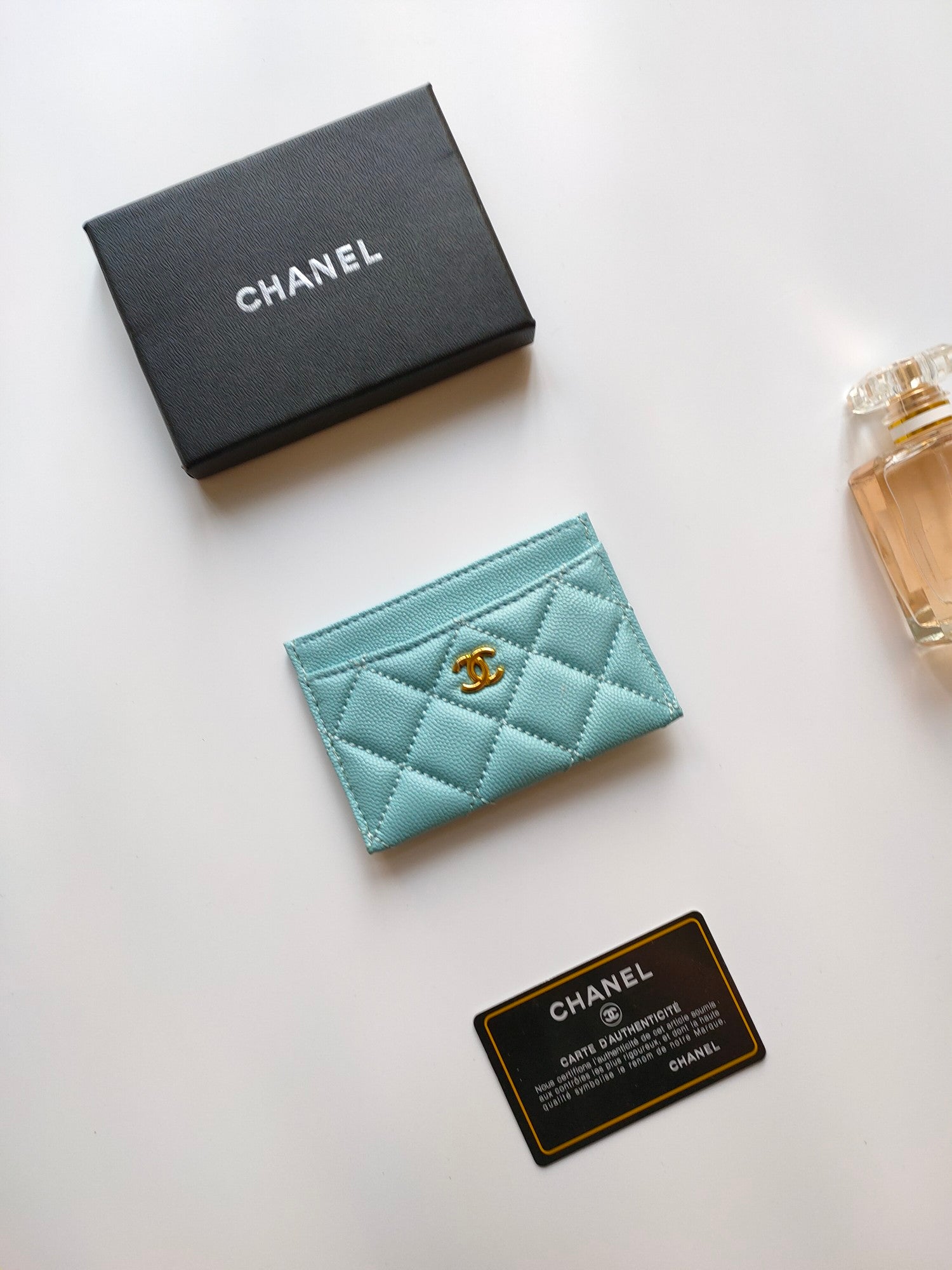 CC CARD HOLDER 11.2 SKY GRAINED CALFSKIN GOLD ICON