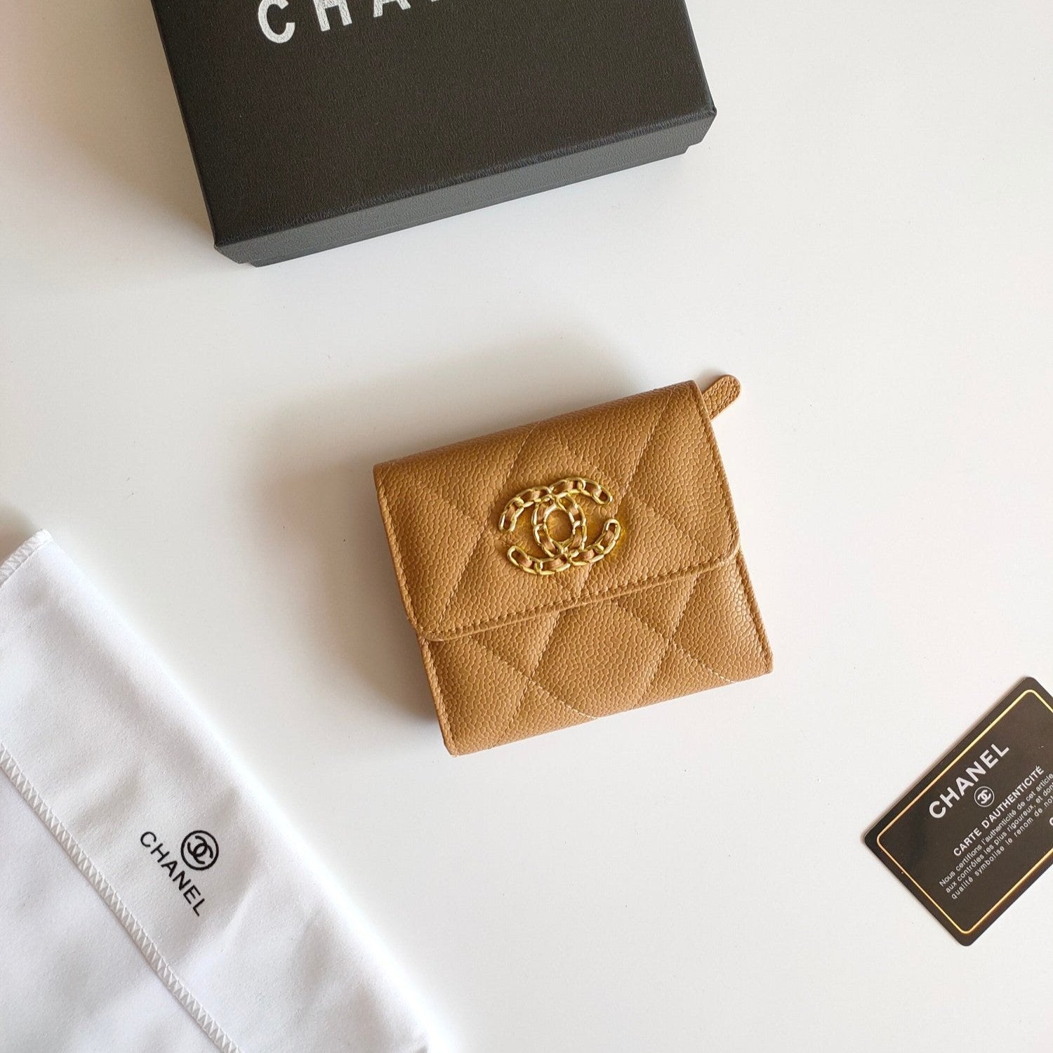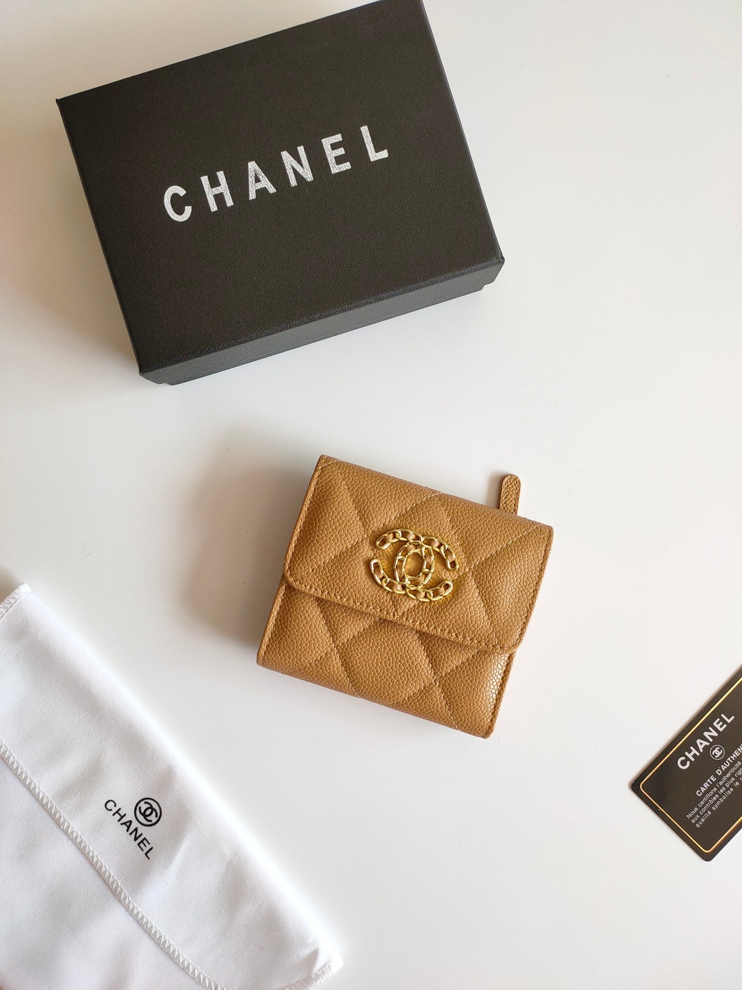 CC SQUARE PURSE 12 AMBER GRAINED CALFSKIN GOLD ICON