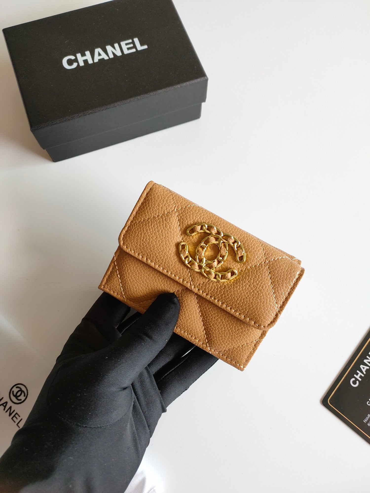 CC TRIFOLD PURSE 12 AMBER GRAINED CALFSKIN GOLD ICON
