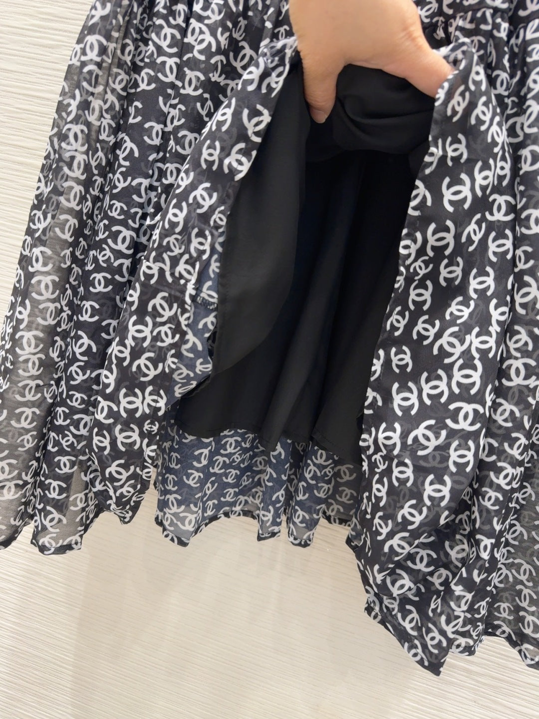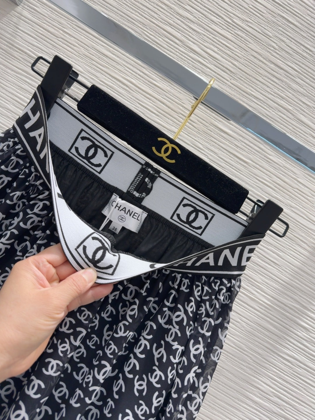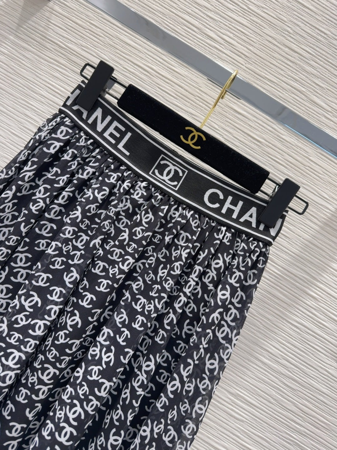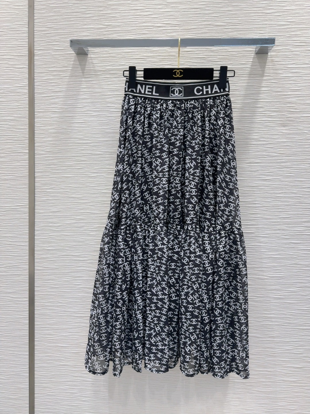 CC 2025 Double C Printed Skirt Black White Polyester Fiber