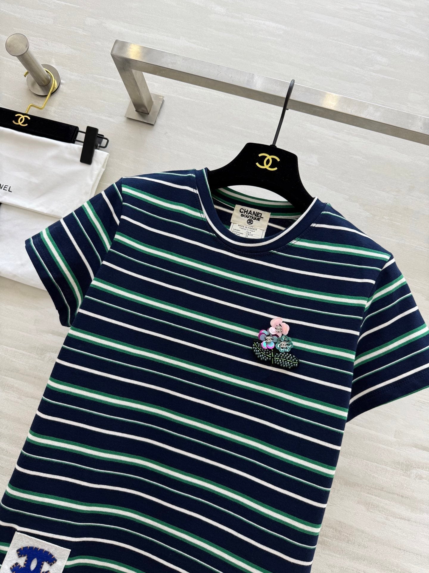 CC Beaded Flowers Shirt Dark Blue Cotton