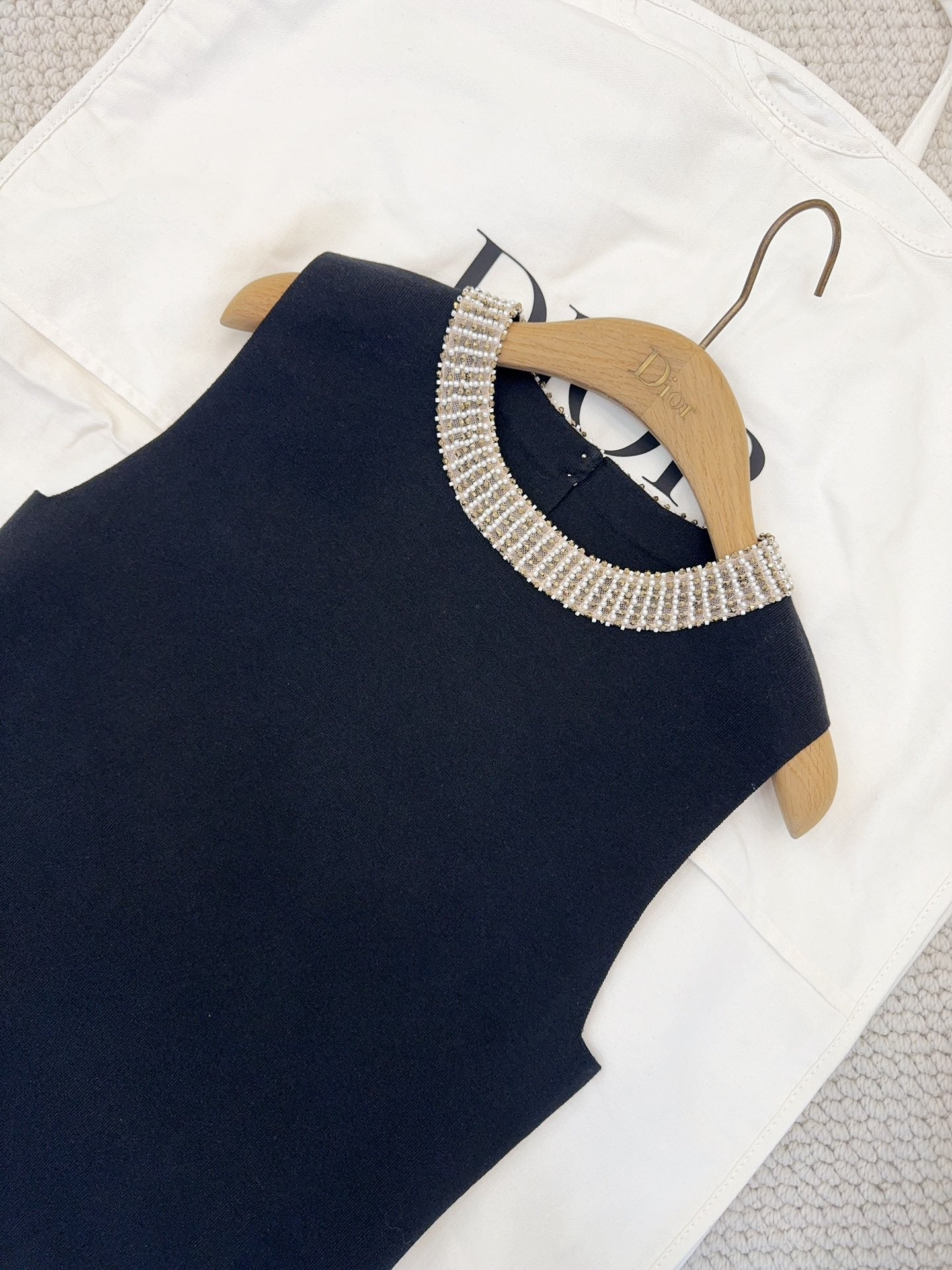 CD 25 Beaded Knitted Dress Blue Tencel Cotton and Silk