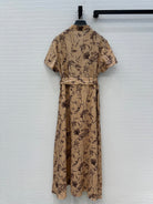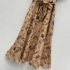 CD 25 Floral Print V-neck Long Skirt Beige mix Dark Brown Linen