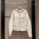 CD Hooded Denim Jacket With Monogram Lining White Beige Cotton