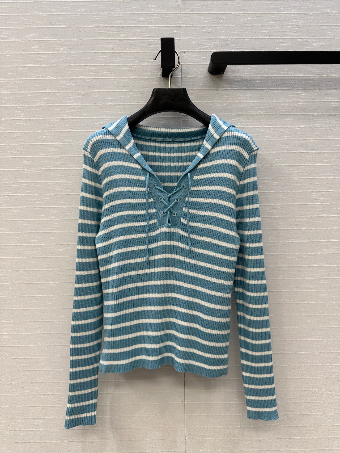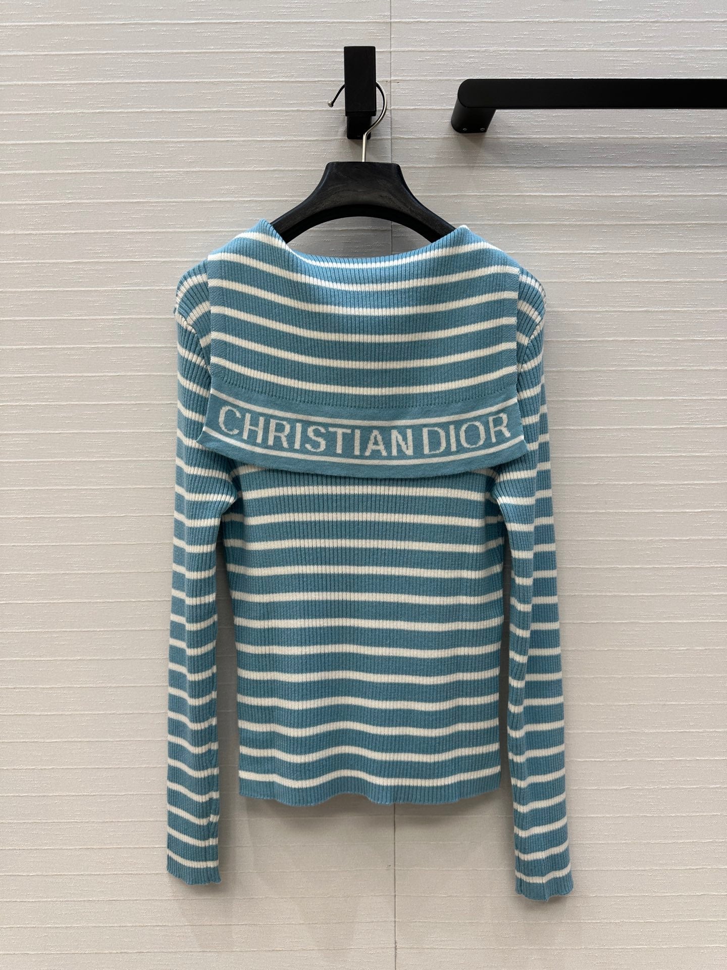 CD Navy Style Collared Sweater Ligth Blue mix White Wool