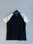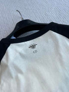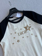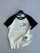 CD Rhinestone Embroidered Short-sleeved T-shirt Black and Beige Cotton