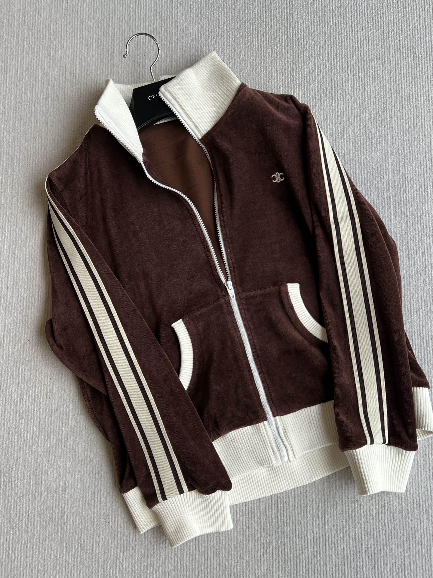 Celine 25 Zipper Jacket Brown White Cotton Polyester