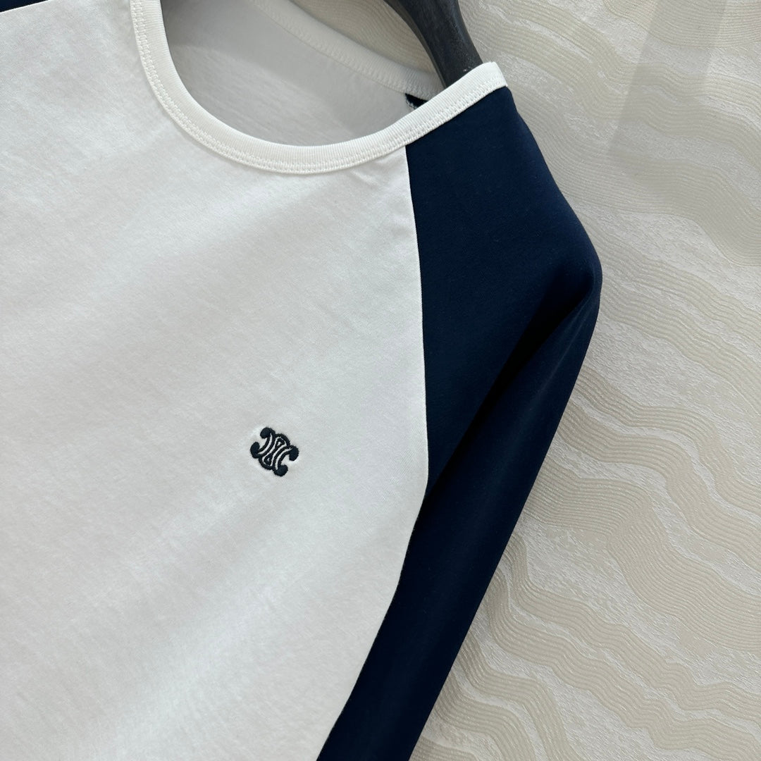 Celine Arc de Triomphe long-sleeved T-shirt Navy Blue mix White Cotton