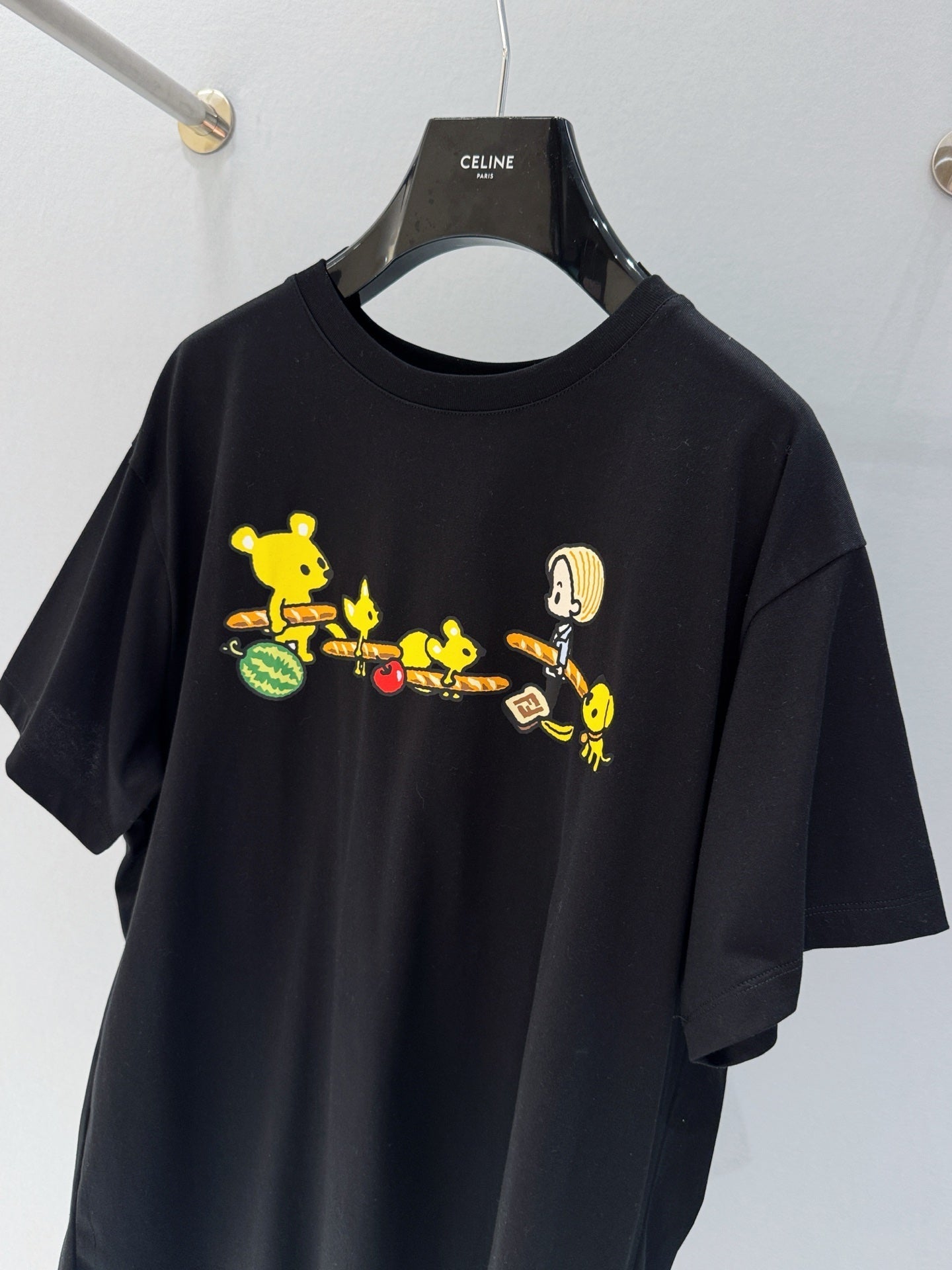 Fendi 25 Baguette Print Round Neck Short Sleeves Black Cotton