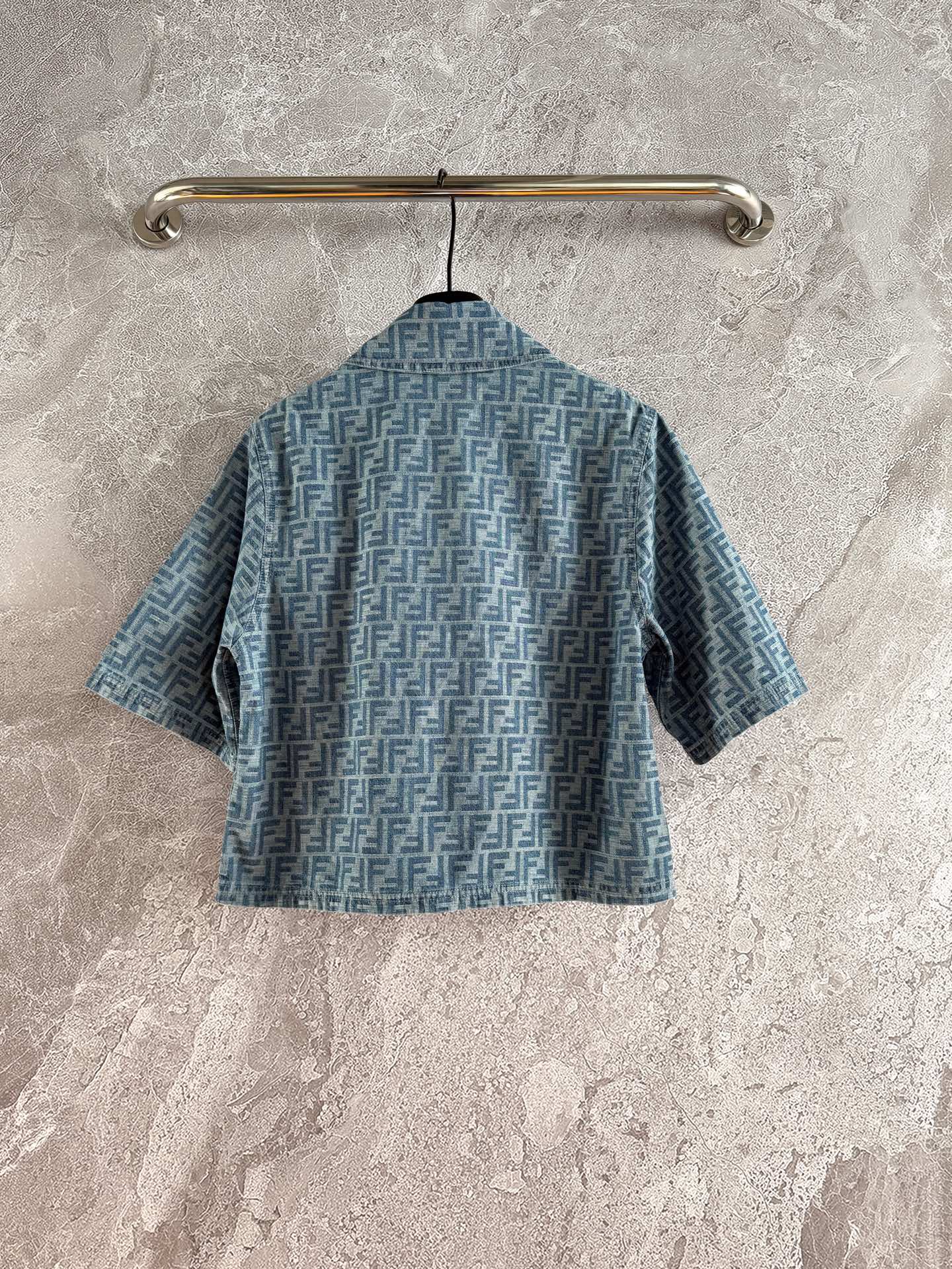 Fendi Old flower denim jacket Blue Gray Cotton Linen