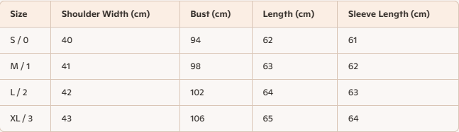 - For more information, please see the size guide below