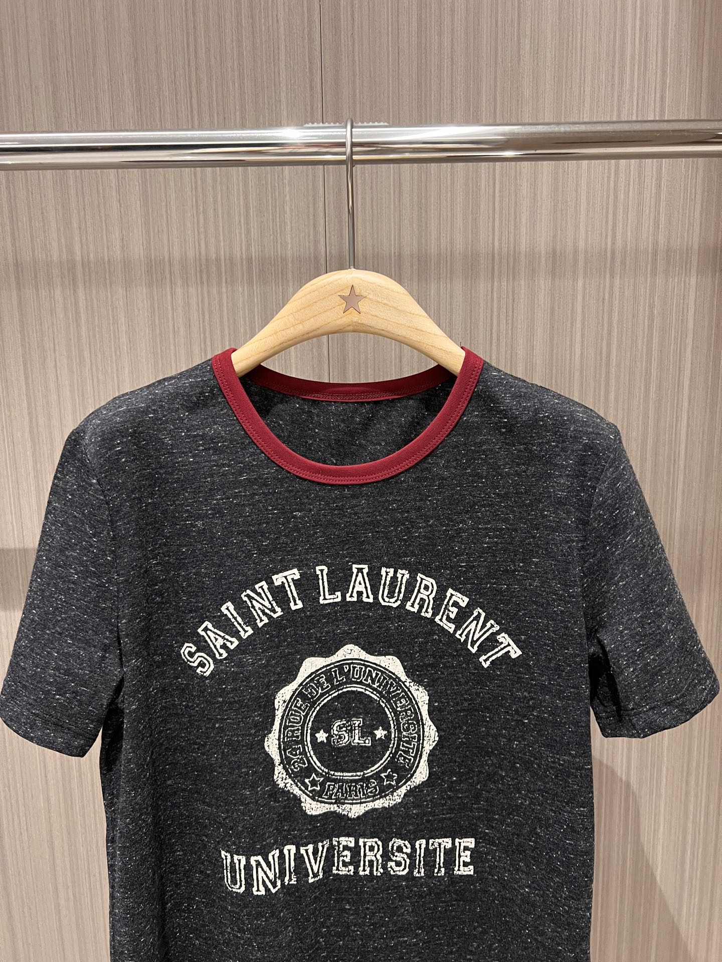 YSL Red Collar Logo Badge T-shirt Gray Cotton