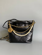 CC HOBO MINI 20CM BLACK LAMBSKIN PEARL CHAIN GHW