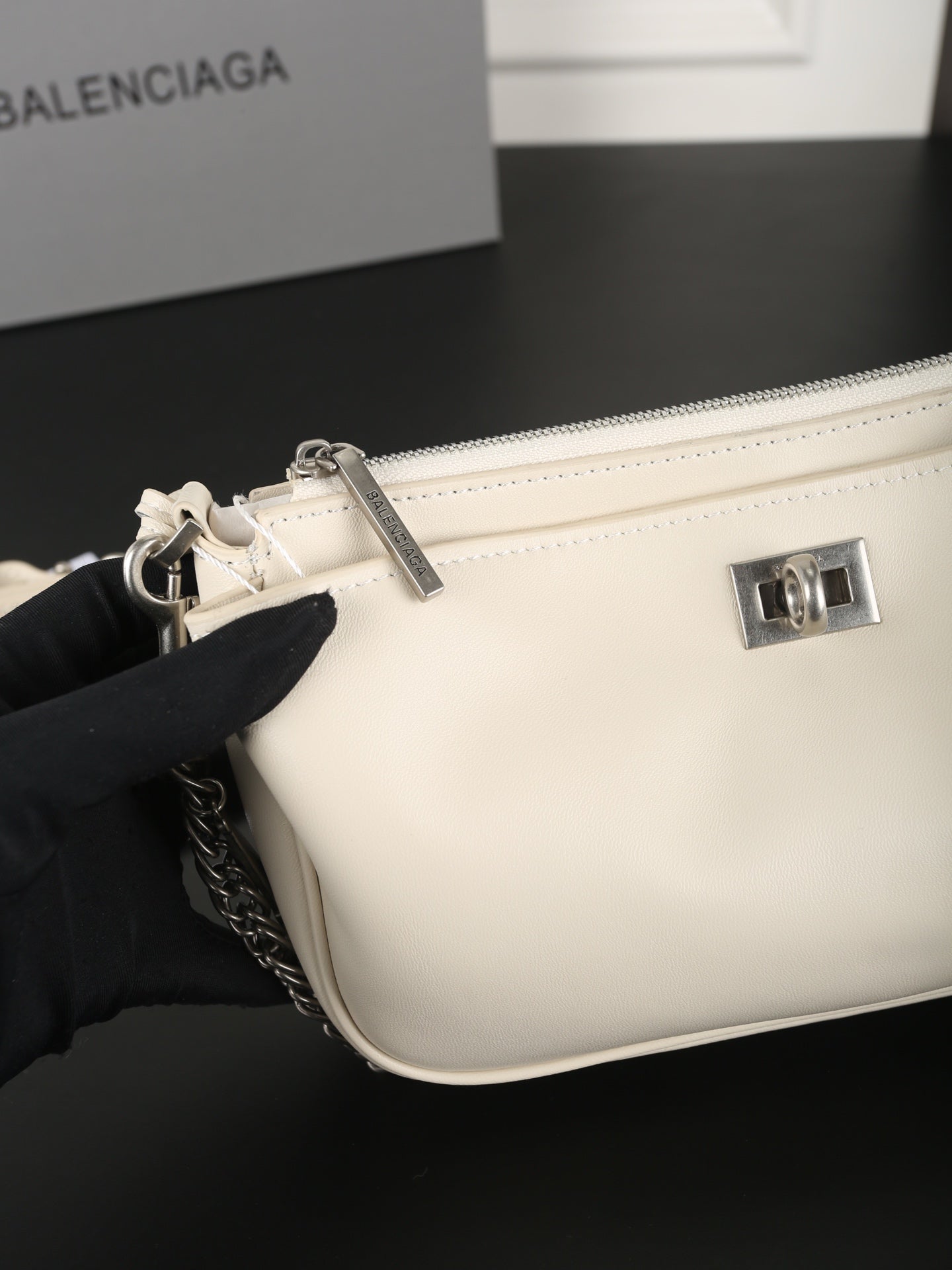 CHAIN CLASSIC BAG 22 IN WHITE SMOOTH CALFSKIN SILVER HARDWARE