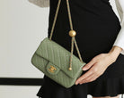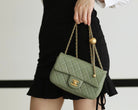 FLAP BAG 20CM KHAKI LAMBSKIN GOLD HARDWARE
