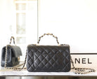 FLAP BAG 23 BLACK LAMBSKIN GOLD HARDWARE TOPHAND