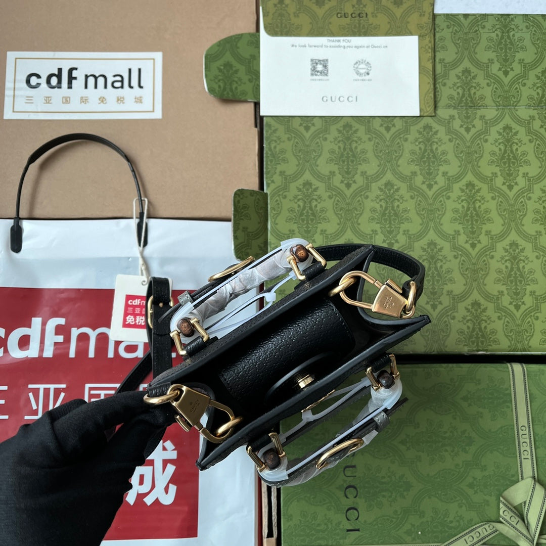 Gucci Diana Bamboo Mini Tote Bag Black Lambskin 240108