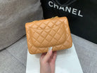 MINI SQUARE FLAP BAG 17CM BROWN LAMBSKIN GOLD HARDWARE