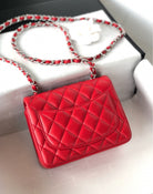MINI SQUARE FLAP BAG 17CM RED LAMBSKIN SILVER HARDWARE