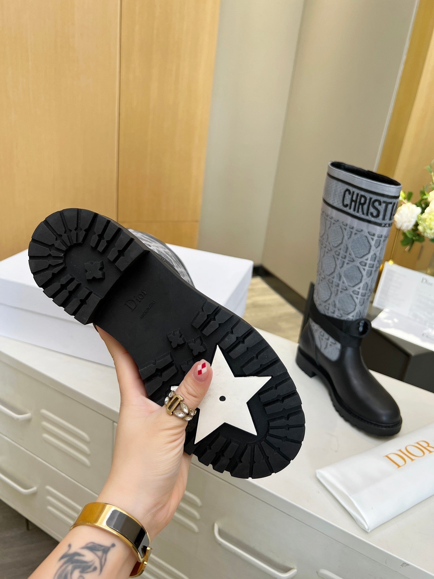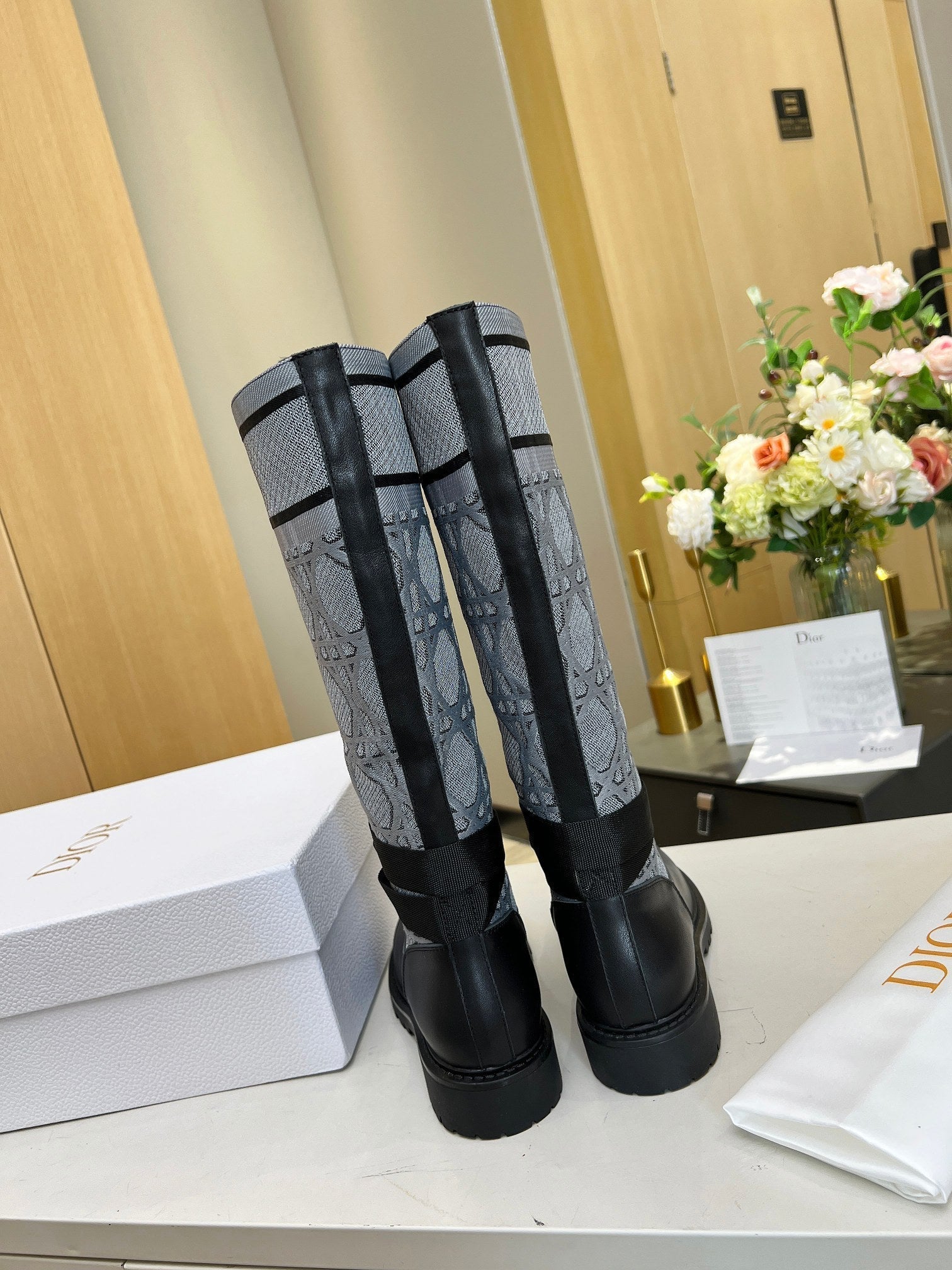D-Major Boot In Grey Mix Black Denim Fabric And Lambskin 107717