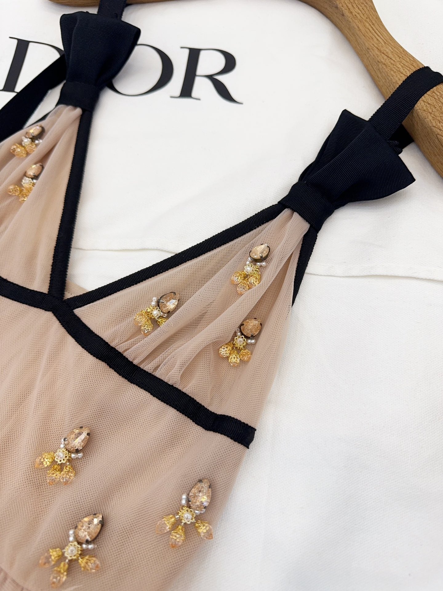 CD 2025 Beaded Dress Gray-pink Mesh Silk