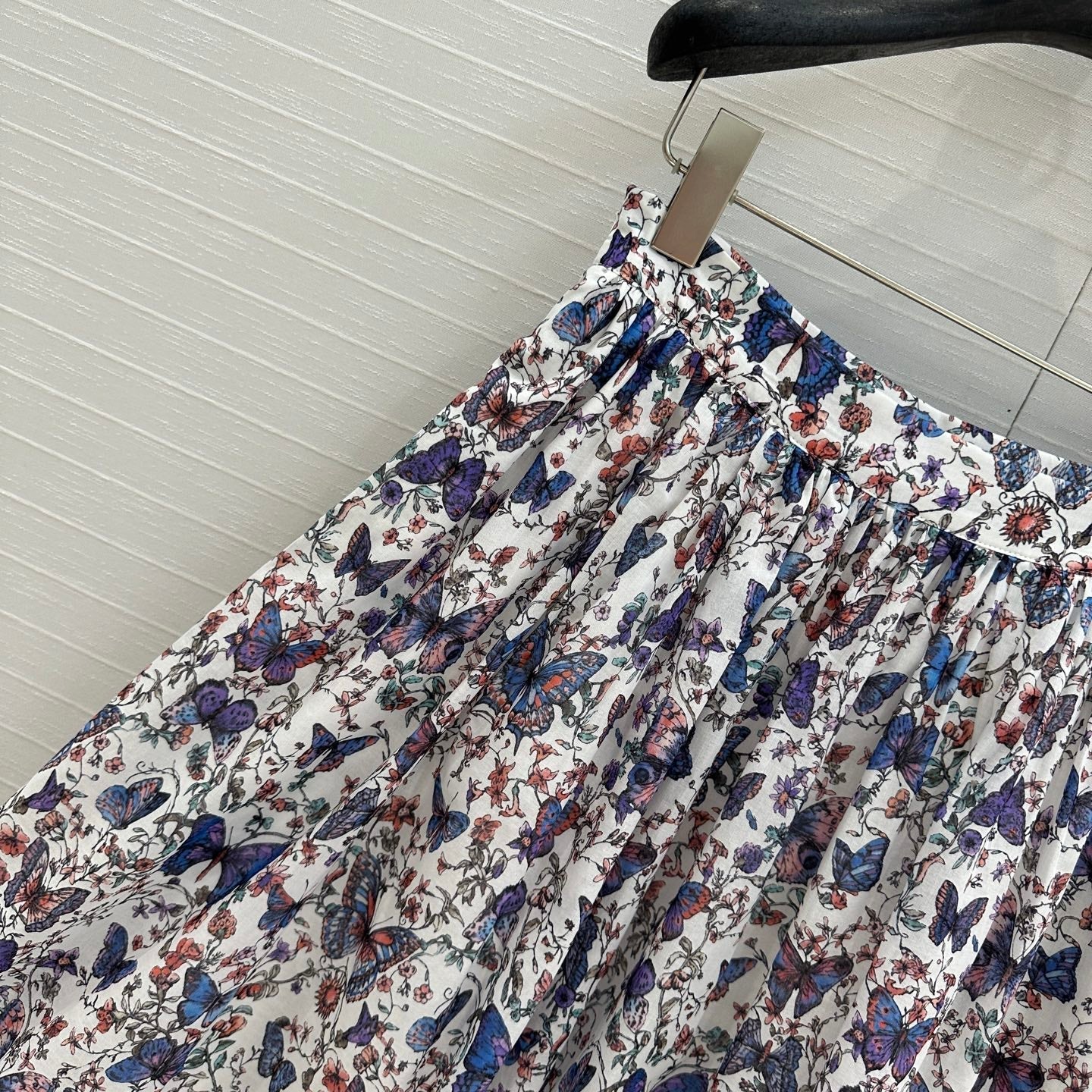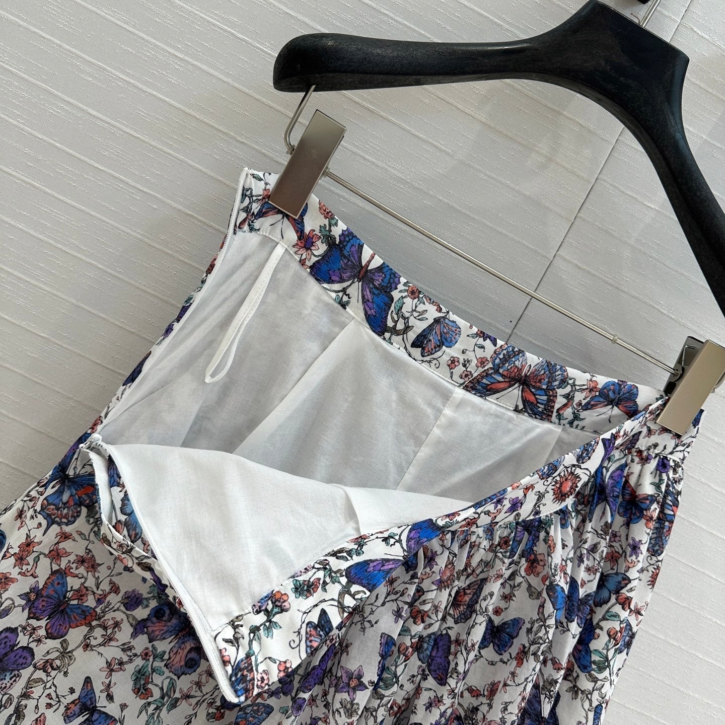 CD 2025 Butterfly Printed Long Skirt Multicolor Cotton