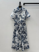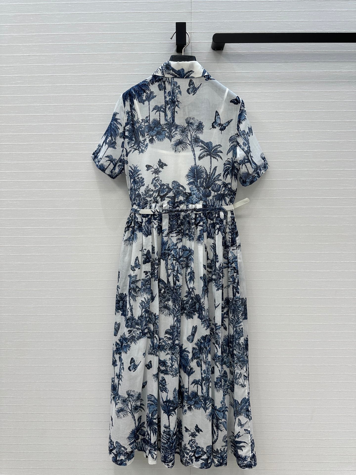 CD 25 Butterfly Coconut Print Shirt Dress White Blue Cotton