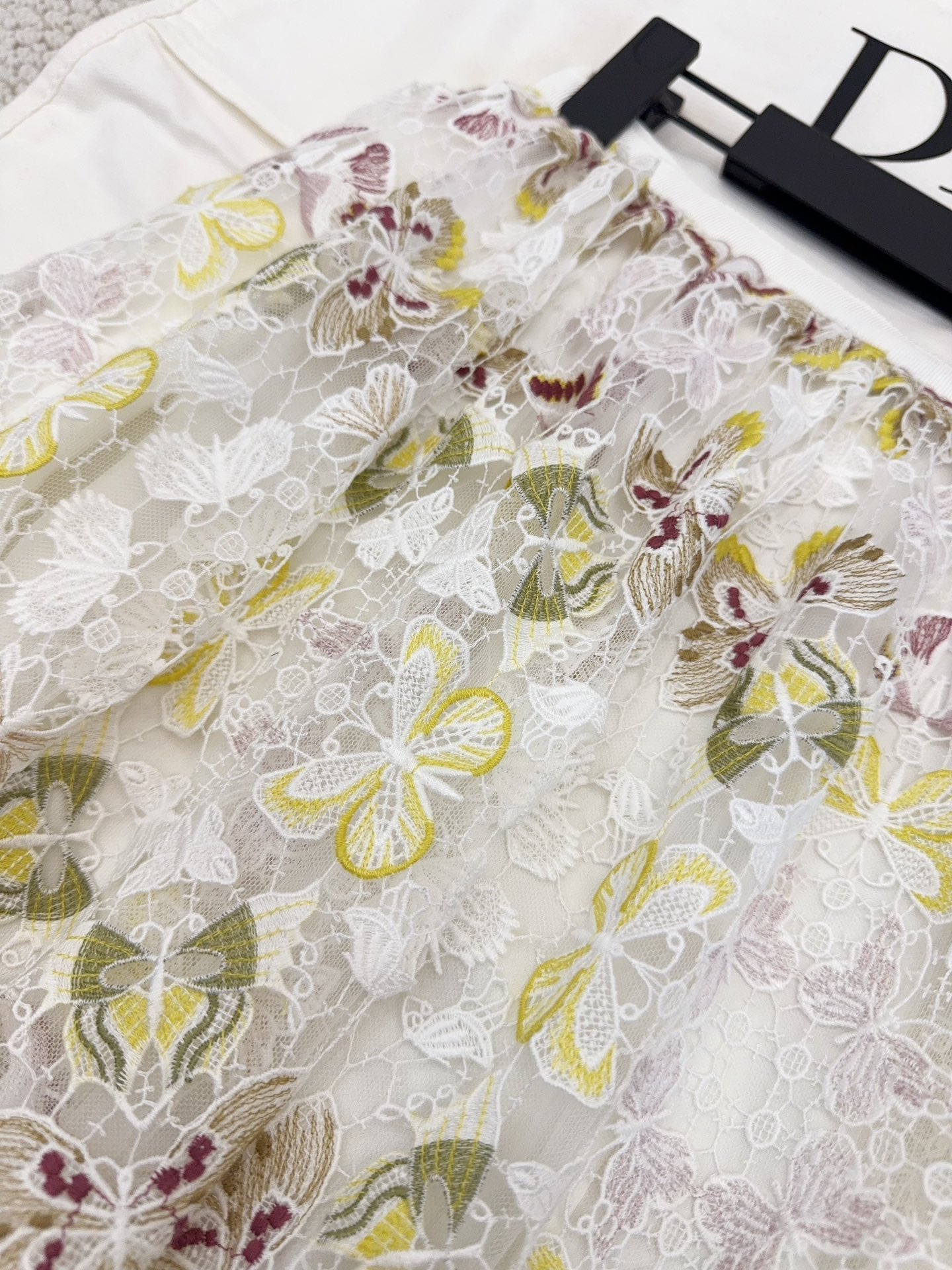 CD 25 Butterfly Embroidered Long Skirt Lace Silk