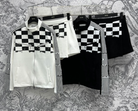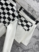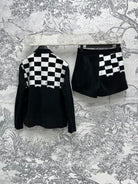 CD 25 Checkerboard Contrast Ribbon Casual Suit Polyester