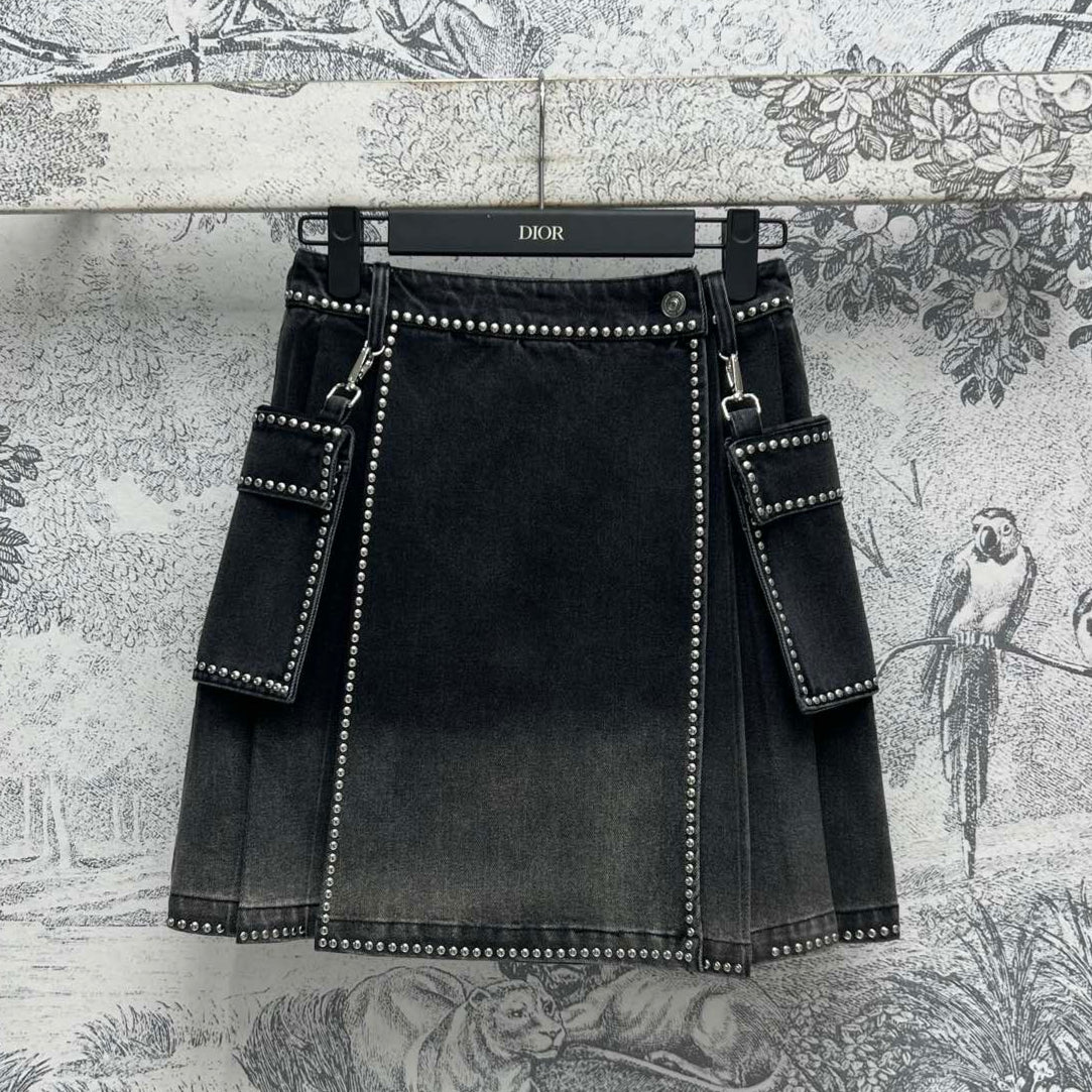 CD 25 Color Gradient Pleated Skirt Black Cotton