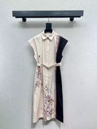 CD 25 Floral Dress With Belt Beige Cotton