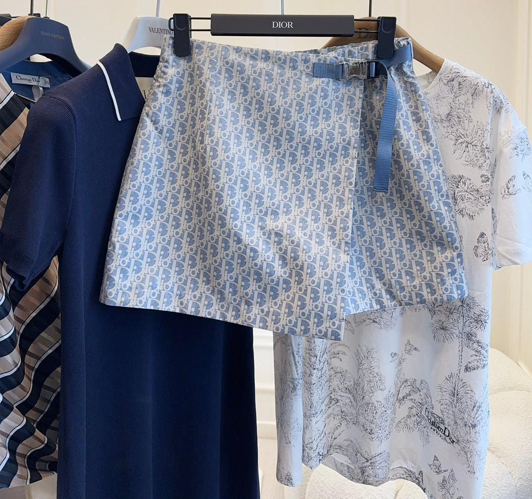 CD 25 Monogram Set Blue Jacquard Fabric
