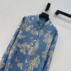 CD 25 Pleated Flared Forest Shirt Blue White Cotton