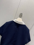 CD 25 Short-sleeved Jacket with Pleated Shorts Set Blue Polyester 220935
