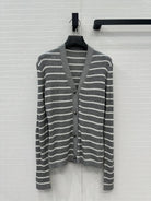 CD 25 Striped Cardigan Gray mix White Linen Cashmere