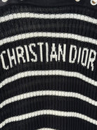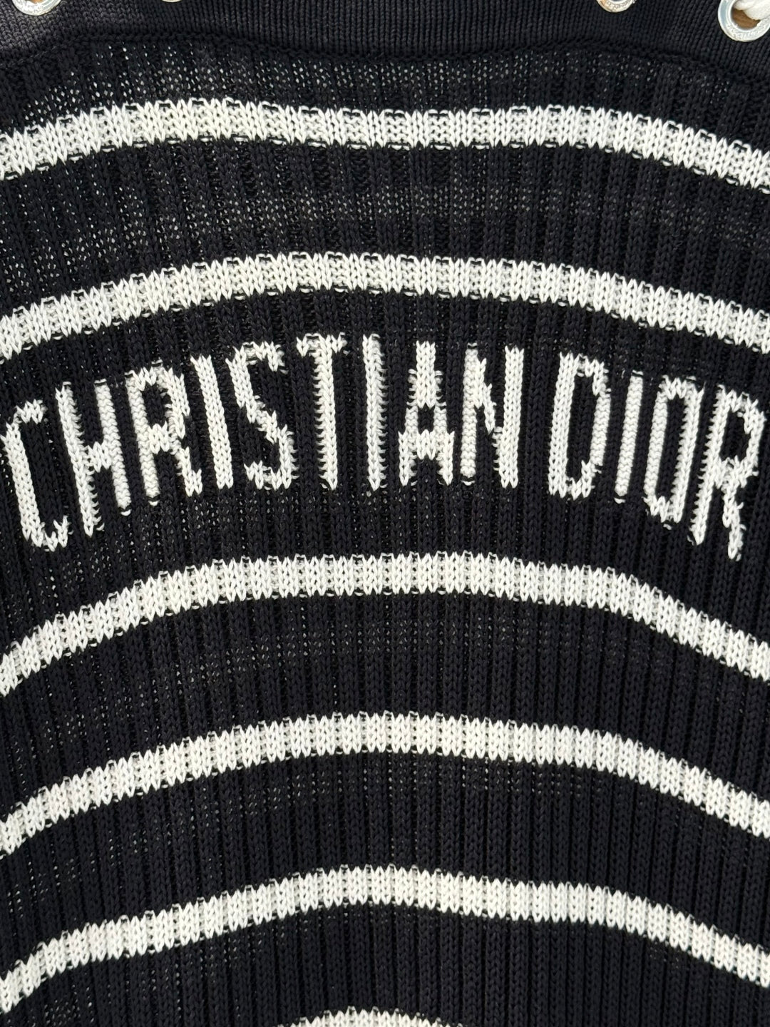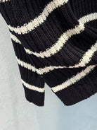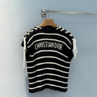 CD 25 Striped One-shoulder Knitted Short-sleeved Top Black Cotton