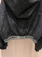 CD Hooded Waistband Denim Jacket Black mix Gray Cotton