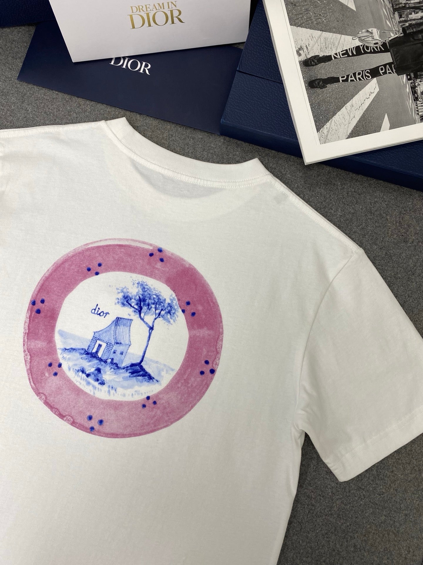 CD Loose T-shirt White Blue Cotton