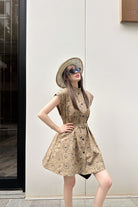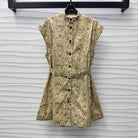 CD Short Belted Shirtdress Beige Cotton Gabardine with Black Motif