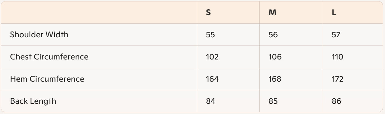 • Size: S, M, L
