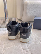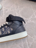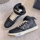 CD B27 High-Top Sneaker Black Charcoal Blue Print Calfskin And Oblique Jacquard Fabric
