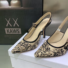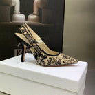 JAdior Slingback Pump 95 Black Embroidered Cotton with Gold-Tone Metallic Thread