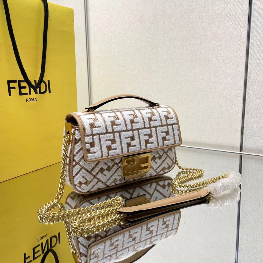 BAGUETTE 24 IN WHITE WOOL AND CAMEL BROWN RAFFIA CALFSKIN TRIM