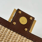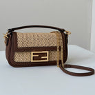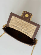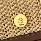 FENDI BAGUETTE 20 BAG IN BEIGE RAFFIA AND BROWN CALFSKIN WITH GOLD HARDWARE